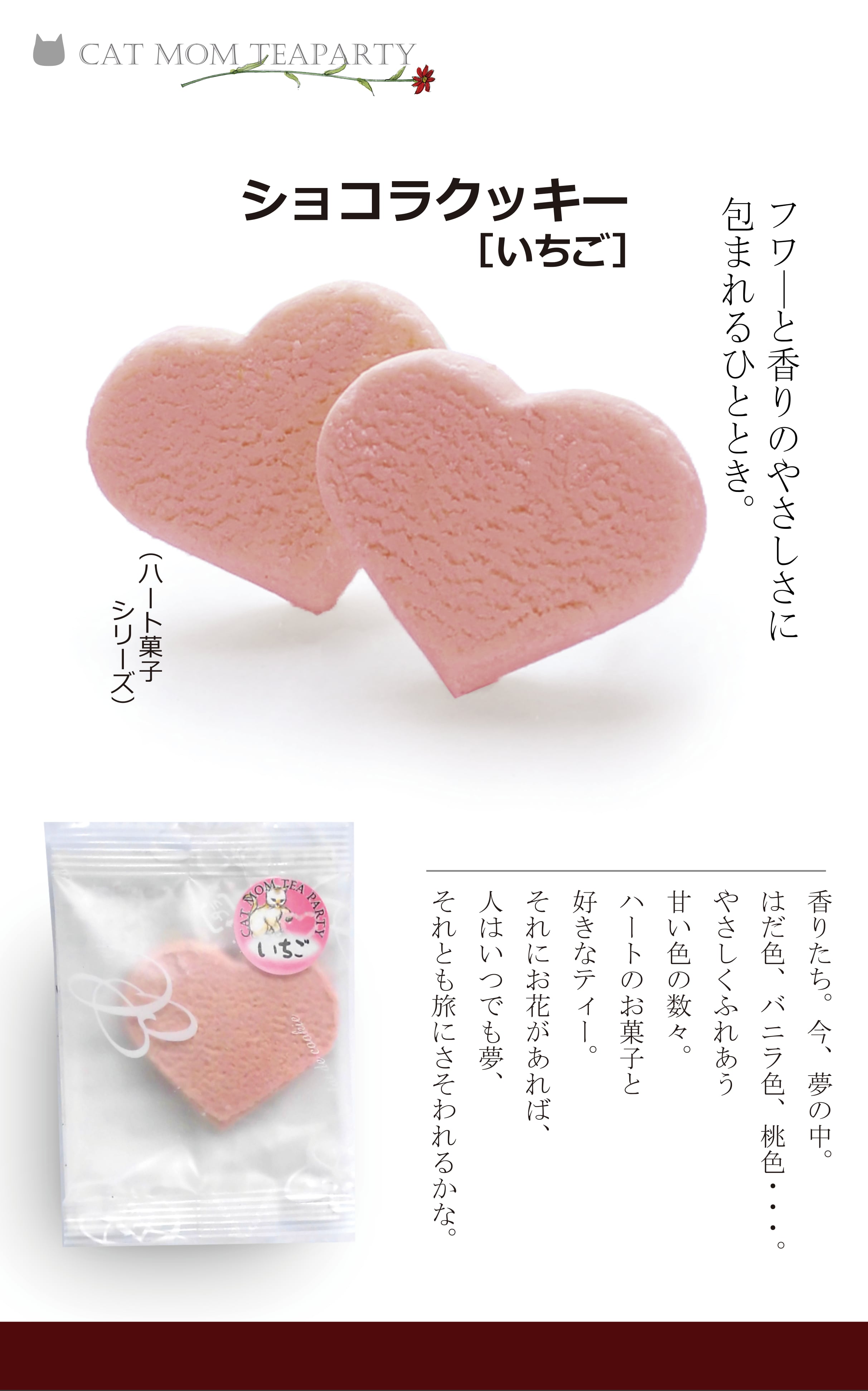 原材料名 : 小麦粉、いちごチョコレート、マーガリン、準チョコレート、砂糖、乳加工品、粉末卵白、いちご果汁加工品、コーンスターチ/乳化剤、香料、着色料(クチナシ、紅麹、カロテン)、酸味料、酸化防止剤(ローズマリー抽出物)、(一部に小麦・乳成分・卵を含む)