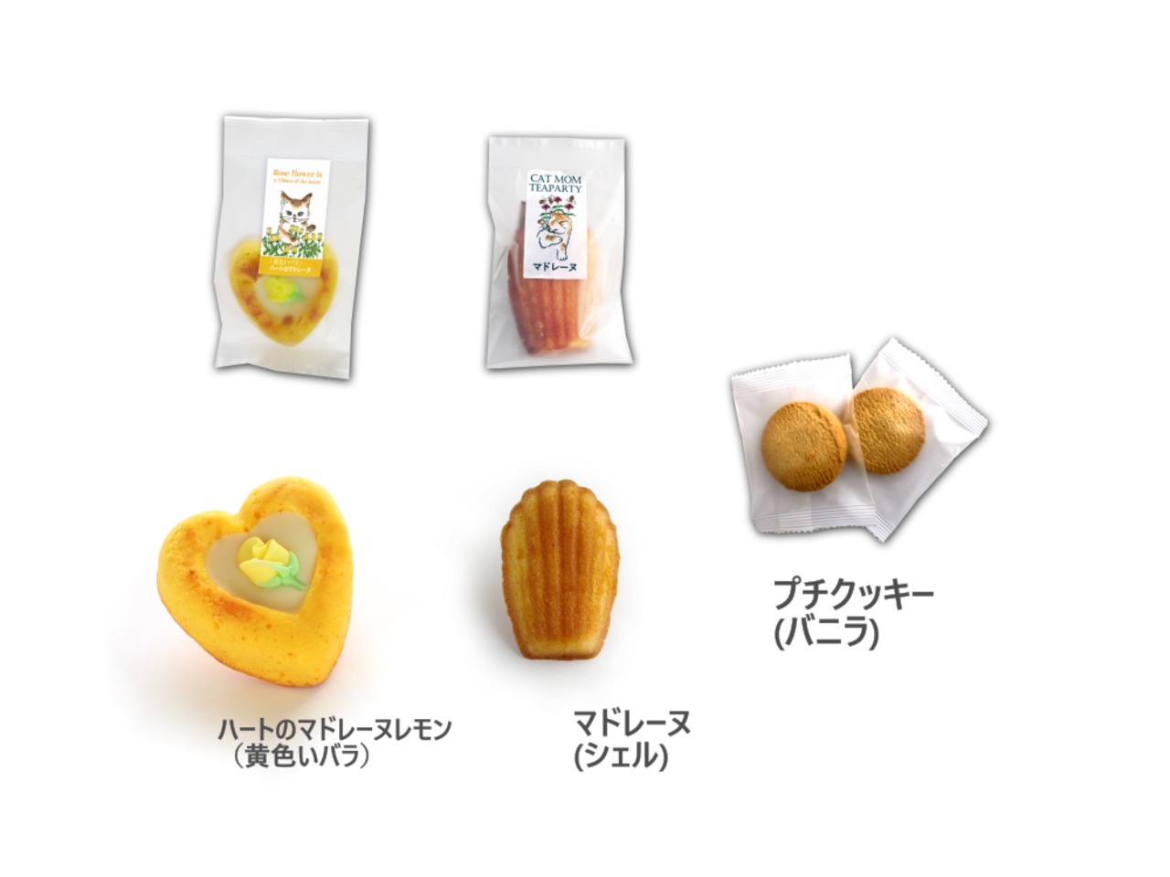 ハートのマドレーヌとクッキーたちを花束のようにかわいくお包みし、